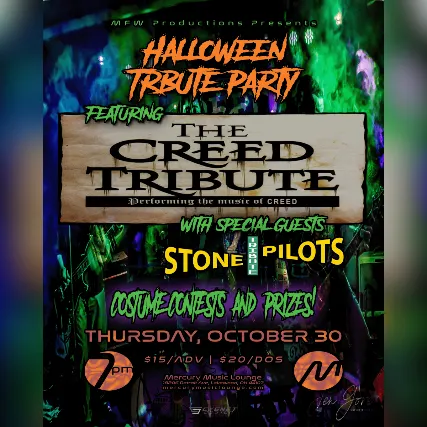 The Creed Tribute + Stone Tribute PilotsPlaying the music of Creed & Stone Temple PilotsThursday, October 30th, 2025Doors 7pm / Show 8pm$15 ADV / $20 DOSCostume Contest! Prizes for the winners!