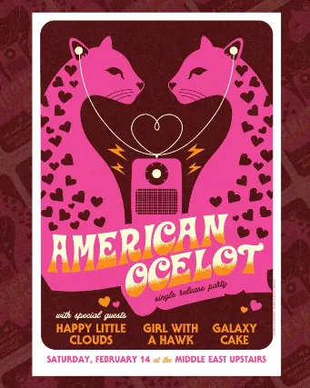 18+ w/Valid I.D. NO I.D.=NO ADMISSION The Middle East presents: - Galaxy Cake, American Ocelot, Girl With A Hawk, Happy Little Clouds - 18+, $20, 7pm doors NO VAPING OR SMOKING IN THE BUILDING*** DINE and SKIP the Line ***