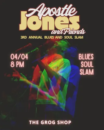 Saturday, April 4Apostle Jones and Friends present The Third Annual Blues & Soul SlamDoors 7:30 PM | Show 8:30 PMALL AGES$17 advance / $20 day of show+ $3 at the door if under 21For the third straight year, Apostle Jones s most compelling musicians and singers.The Blues its an immersive, full-band celebration of the music that shaped us. Over the past two years, the walls have shaken with raw vocals, deep grooves, and once-in-a-lifetime collaborations. This is community at its best: artists stepping up together to throw down on the blues and soul songs that move us.Past Slam performers have included Barbara Barrett, L.A. Bailey, Esther Fitz, Scott Hanna, Taylor Lamborn, Austin Walkin Cane, Brent Kirby, Ray Flanagan, Frida, Bria Miller, Henry LoConti and Honey Monai a lineup that reads like a love letter to Northeast Ohios musical spirit.Year three is shaping up to be another landmark chapter bigger energy, deeper cuts, and the kind of electric, shared experience you can only get when a packed room meets a stage full of soul.Come ready to feel something.