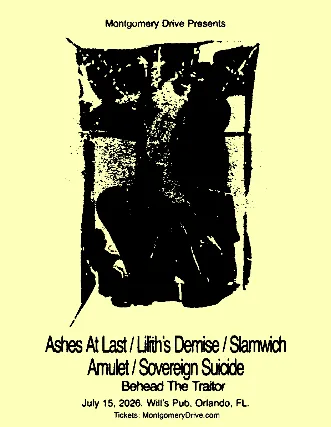 Montgomery Drive Presents Ashes At LastLiliths DemiseSlamwichAmuletSovereign SuicideBehead The Traitor July 15th, 2026Wills Pub