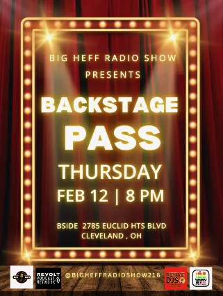 Thursday, February 12thBig Heff Radio Show Presents...BACKSTAGE PASS8:00P - 12:00AHosted By: Big HeffMusic By: DJ Dreem$10 | 21+