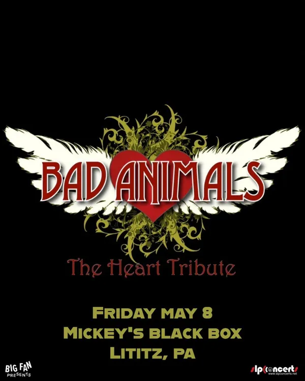Presented by Big Fan Presents Bad Animals - The Heart Tribute is the next best thing to the real thing. Lead vocalist Daena D delivers a stunningly accurate recreation of Ann Wilsons soaring signature vocals, while Gina D captures the charismatic guitar and trademark vocals of Nancy Wilson. Together, both ladies also present a remarkable physical resemblance to the Wilson sisters, resulting in the most authentic tribute to Heart touring today. Bad Animals live performances feature a full, 6-piece band, highlighted by the beautiful, powerful, flawless voices of these two ladies front and center!