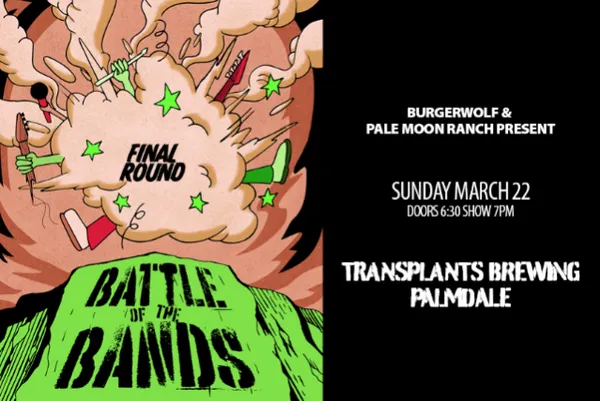 There will be 3 preliminary rounds taking place on March 8, March 22 and April 13:Each preliminary round will contain 7 bandsEach band will have a 15 minute setBand order for the night will be chosen at randomDrummers must use the house kit, but can bring breakablesThe winner of each preliminary round will be determined by an audience vote:Admission will be $10 (in advance or at the door) Each ticketed entry will grant a single vote Each additional purchase of beer, NA drinks, food or merch will grant an additional voteThe final round will take place on Sunday April 19:The final round will contain 4 bands: the winner from each preliminary round plus a wildcard entrant from the previous rounds chosen by team TransplantsFor the final round, each band will have a 30 minute setBand order will be chosen at randomThe winner of the final round will be determined by a panel of judgesGuitar and bass players are strongly encouraged to use the house cabs for quick changeover