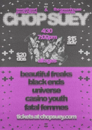 Sweethearts Productions & The Green House Present:Beautiful Freaks, Black Ends, Universe, Casino Youth, Fatal Femmes