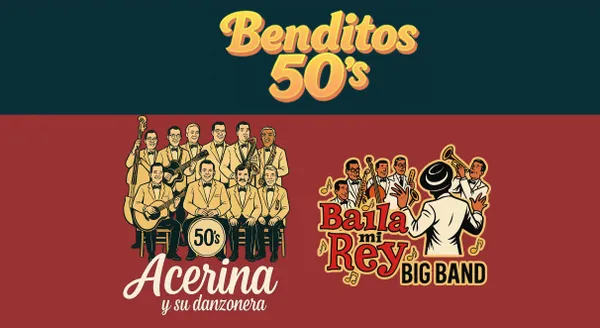 Benditos 50's", llega al Teatro Tepeyac este viernes 3 de octubre con dos funciones inolvidables. Disfruta en vivo a Acerina y su Danzonera y La Baila Mi Rey Big Band, reviviendo lo mejor de Glenn Miller, Ray Conniff, Luis Arcaraz, Pérez Prado y más. Una noche para cantar, bailar y dejarte llevar por el ritmo y la nostalgia de los años cincuenta. Boletos desde $150 pesos ¡No te lo pierdas