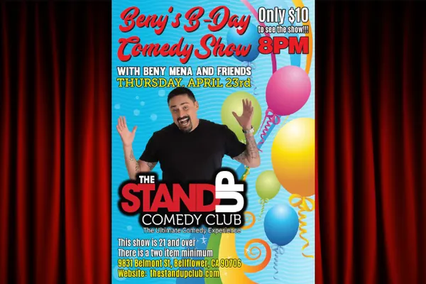 Turning a year older is optionallaughing about it loudly is mandatory. Its Beny Menas Birthday Comedy Show, and hes celebrating the only way a seasoned stand-up should: by roasting life, aging, and probably you. Known for lighting up Latino comedy stages across SoCal and packing rooms with his quick-fire crowd work, Beny has that rare talent of making strangers feel like lifelong friends right before he clowns them.Expect a stacked lineup, surprise moments, and birthday energy that spirals delightfully out of control.Cake is sweet. These jokes hit harder. Grab your tickets now before someone else blows out your seat. ******************************************SCAM ALERTIMPORTANT TICKET INFORMATION******************************************To protect our customers, please DO NOT purchase tickets from third-party sites such as StubHub, VividSeats, BoxOfficeTicketSales, EventTicketCenter, eTickets, Ticket-Center, TicketSales, or any other unauthorized platforms. These sellers are not affiliated with us and often charge inflated prices.All tickets purchased through our official site are WILL CALL ONLY they will not be emailed to you. You will receive a confirmation email after your purchase, and your tickets will be available for pick-up at the door on the night of the show.We will never ask you to call a 1-800 number. If you have any questions, please call us directly at 562-202-9944.Our ONLY authorized ticketing partner is TicketWeb, which is linked directly from our website: TheStandUpClub.com.Ticket resale is strictly prohibited. Tickets suspected of being purchased for the sole purpose of resale may be canceled at the discretion of The Stand Up Club.To ensure your tickets are valid, always purchase directly from TheStandUpClub.com or TicketWeb.com. Stay safe. Dont get scammed.