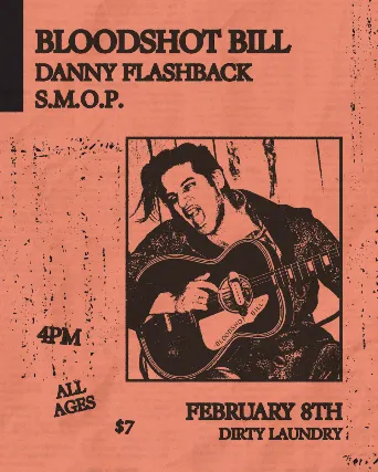 Bloodshot Bill, Danny Flashback, and S.M.O.P.Live at DIrty Laundry on February 8th, 2026 4PM DoorsAll Ages$7 Cover