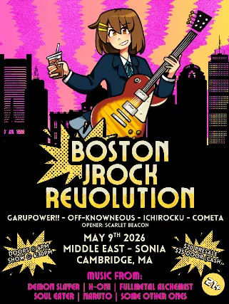 18+ w/Valid I.D. NO I.D.=NO ADMISSIONThe Middle East presents: Boston J-Rock Revolution w/ Cometa, GaruPower!!, Off-Knowneous, IchiRockU, & Scarlet Beacon - 21+, $20 Advance / $25 Day of Show, 6:00 PM Doors NO VAPING OR SMOKING IN THE BUILDING​*** DINE and SKIP the Line ***