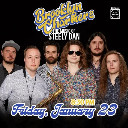 Impact Fuel Room & TCM Events present Brooklyn Charmers: The Music of Steely Dan Friday, January 23rd!Ages | 21+Doors | 8pmShow | 8:30pm-------------------------------------Brooklyn CharmersFacebook Website YouTubeBrooklyn Charmers is a Steely Dan tribute band comprised of some of Chicagos top players. With masterful precision and obsessive dedication to the music, Brooklyn Charmers injects a new energy into the beloved catalogue; bridging the gap between new and lifelong fans alike.