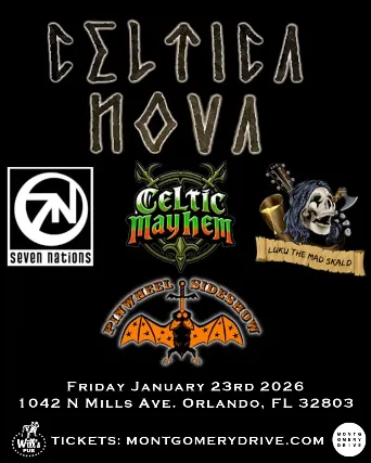 Titans of the Renaissance Faire getting together for a rocking show!Montgomery Drive Presents Celtic NovaSeven NationsCeltic MayhemLuku The Mad SkaldPinwheel Sideshow Friday, January 23rd, 2026Wills Pub- Orlando, FL7PM Doors
