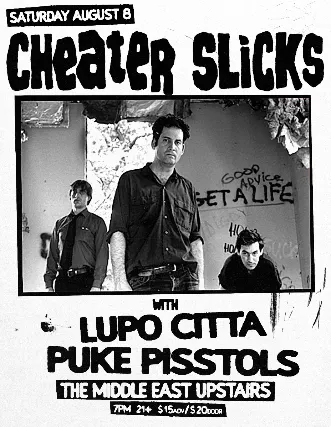 18+ w/Valid I.D. NO I.D.=NO ADMISSION The Middle East presents: Cheater Slicks, Puke Pisstols, Lupo Citta - 21+, $15 Advance / $20 Day of Show, 7:00 PM Doors NO VAPING OR SMOKING IN THE BUILDING*** DINE and SKIP the Line ***
