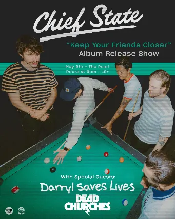 Legal Age 19+ (Valid Photo I.D. Required)MODO-LIVE presents...Chief State: Keep Your Friends Closer Album Release ShowWith Special Guests Darryl Saves Lives & Dead Churches Saturday, May 9th, 2026The PearlVancouver, BC