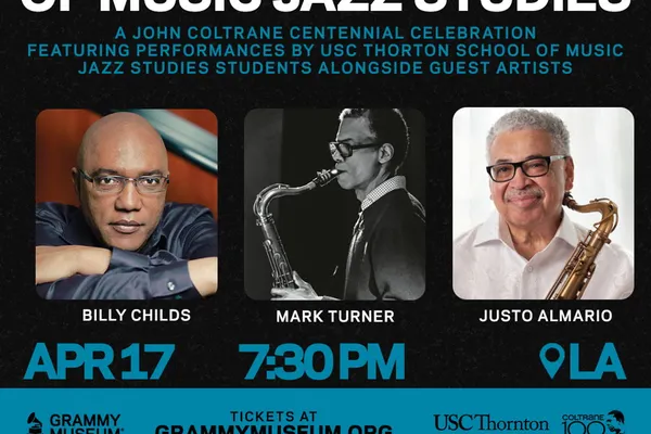 The GRAMMY Museum is thrilled to host a special evening at the Museum’s Ray Charles Rooftop Terrace to celebrate the centennial of jazz legend John Coltrane, featuring dynamic performances by students from the USC Thornton School of Music Jazz Studies program alongside renowned guest artists Billy Childs, Mark Turner, and Justo Almario. This unforgettable tribute honors Coltrane’s enduring legacy and influence on modern jazz through powerful live music and inspired interpretations.