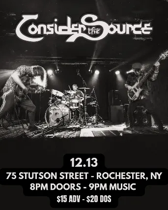 Consider the Source brings their genre-spanning “sci-fi Middle Eastern fusion” back to Rochester on Saturday, December 13, for a night of deep grooves, wild improvisation, and total musicianship.Known for their intricate rhythms, extended jams, and loyal fanbase, CTS continues to bridge worlds between progressive rock, jazz, and global music traditions.FLOWR presents...📅 Saturday, December 13🕗 Doors 8PM | Music 9PM🎟 $15 Advance | $25 Day of Show📍 75 STUTSON STREET ROCHESTER NY 👥 All Ages | Under 18 with a parent or guardian
