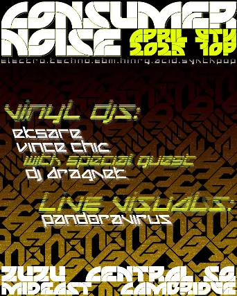 21+ w/Valid I.D. NO I.D.=NO ADMISSIONThe Middle East & ZuZu present: Consumer Noise ft. Eksare, Vince Chic, DJ Dragnet, Pandovirus - 21+, No Cover, 10:00 pm doors NO VAPING OR SMOKING IN THE BUILDING*** DINE and SKIP the Line ***