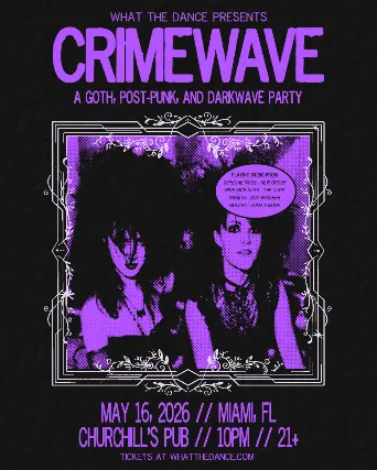 Miami! Dive into the shadows and lose yourself to CRIMEWAVE - a night of your favorite goth, darkwave, new wave, post-punk, and industrial music Dress to impress and dance into the darkness at:Churchills PubSaturday, May 1610pm21+DJ @misspurple.mp3 will be spinning music from the likes of Depeche Mode, The Cure, Nine Inch Nails, Mareux, Molchat Doma, Boy Harsher, and so much more!Gogo dancing by @the.goddessopal & @persephonevonlipsYour night awaits @thedanceparties