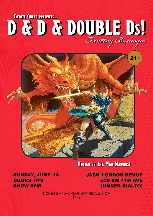 Prepare to lose concentration...Dt be surprised if you find yourself Charmed, Stunned, and Prone - this is exactly the kind of rhinestone ritual the party warned you about.Seats will vanish faster than a rogue in dim light, so secure yours now!Dungeon doors open Sunday, June 14th at 7 PM.JLR Seating Map Notes: For this show, you may reserve individual tables on the map pictured. Note that some tables have limited sightlines as noted. General Admission ticket holders note that seating and sightlines are limted and may be standing room only. All table reservations include admission.Instructions: For Table Reservations: Note the relative location of the stage and bar on the map. Then click a table number to see prices, or click Show All Tickets. Click the + button to add a specific table to your cart. For General Admission tickets: click the GA Standing area. Click the + button to add additional tickets.Click Agree