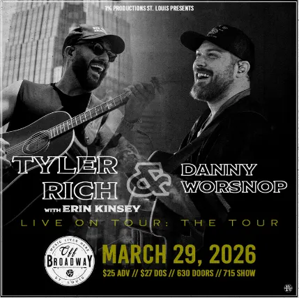 1% PRODUCTIONS ST. LOUIS PRESENTS:DANNY WORSNOP & TYLER RICHW/ ERIN KINSEYSUN. March 29, 2026Doors 6:30PM | Show 7:15PM$25 ADV | $27 DOS | $190 VIP1 | $85 VIP2Artist Presale and VIP Onsale begin tomorrow, January 13, at 10 AM CT*Spotify and Bandsintown Presales begin Wednesday, January 14, at 10 AM CT*General Onsale begins Friday, January 16, at 10 AM CT.*Presales end Thursday, January 15, at 11:59 PM CT, and VIP sales end Sunday, March 22, at 7:15 PM.All Ages (21+ with valid ID to drink, $3 minor surcharge under 21)VIP1 Package includes:One GA ticketMeet and greet with Danny Worsnop & Tyler RichPrivate pre-show acoustic performance from Danny Worsnop & Tyler RichExclusive autographed poster bundle (one Danny poster, one Tyler post, one Danny & Tyler poster)Commemorative VIP laminateEarly entry into the venuCrowd-free pre-show merchandise shoppingVIP2 Package includes:One GA ticketExclusive autographed poster bundle (one Danny poster, one Tyler post, one Danny & Tyler poster)Commemorative VIP laminatePriority entry into the venueIn order to combat third-party resale, we have recently enacted a delivery delay on all tickets purchased online. You will receive an order confirmation immediately after your purchase, and your tickets will be emailed to you/made available in your Ticketweb account TWO DAYS before the event.