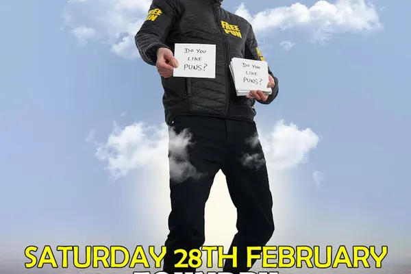 ʞɔǝɥ ←flippin’ heck! Witness a pun Goliath in person, as Darren Walsh brings his 8ft frame and award winning act on the road.From appearing on Comic Relief to his ‘Jokes on the street’ series on social media, he’s been racking up millions of views, but live is where he thrives.Combining sound effects, videos, one-liners and improvised jokes based off audience suggestions, prepare for a comedy show like no other, bar pun.Book now, li is two short.“Punbelievable” ★★★★★ – The Mirror★★★★ – The Sunday ExpressWINNER – Joke of the Edinburgh Fringe