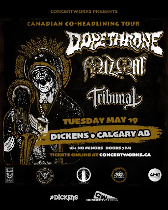 Dopethronehttps://www.facebook.com/dopethrone.mthellhttps://www.instagram.com/dopethroneband/Mizmorhttps://www.facebook.com/whollydoomedblackmetalhttps://www.instagram.com/whollydoomedblackmetal/Tribunalhttps://www.facebook.com/TribunalDoomhttps://www.instagram.com/tribunaldoom/