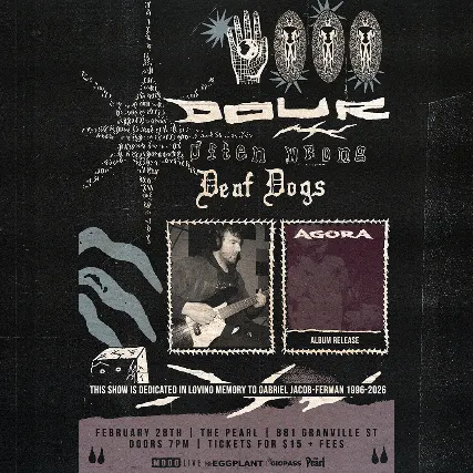 Legal Age 19+ (Valid Photo I.D. Required)MODO-LIVE, I am the Eggplant, Gigpass present...*Dedicated in loving memory memory to Gabriel Jacob-Ferman 1996-2026**DOUR*Agora Album Release* with guestsOFTENWRONGDEAF DOGS Saturday February 28th, 2026The PearlVancouver, BC