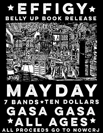 MAYDAY 5/1/26BELLY UP BOOK RELEASE: EFFIGY 7 bandsAll proceeds go to NOWCRJ