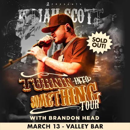 Psyko Steve PresentsELIJAH SCOTTwith special guestBRANDON HEADFriday, March 13th 2026Doors at 7:00 / Show at 7:3021+Advance General Admission Ticket: $25 + feesDay of Show GA Ticket: $30 + feesVIP Upgrade$50 + feesIncludes:-Early Entry-Meet & Greet -Photo Opportunity THE UPGRADE DOES NOT INCLUDE A TICKET. YOU MUST ALSO PURCHASE A CONCERT TICKET TO GAIN ENTRY.