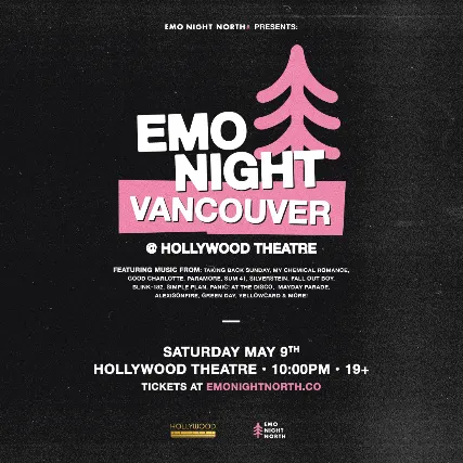 Legal age 19+. Photo I.D. RequiredVancouver, on Saturday May 9th join us at Hollywood Theatre! We will be spinning the classic emo anthems you know, and love + MORE.Saturday May 9 2026Hollywood TheatreDoors: 10PMEnd: 2AMMust be 19+ with Valid Physical Photo ID.Tickets are non-refundable.See you there!