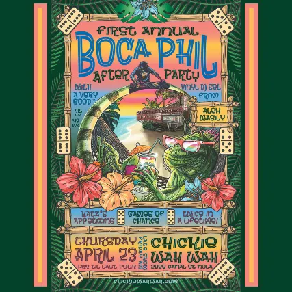 The First Annual Boca Phil After Party is set for the late hours of April 23rd, rolling into the early Friday morning. Katzs pastrami on deck all the way from NYC, well have various games of chance, and a Very Good DJ set from Alex Wasily. Lets celebrate our dear friend of many years Boca Phil Egenthal! Online advance ticket pricing is always lower than walkup ticket pricing.