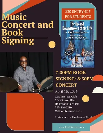 FRED DINKINS: CONCERT & BOOKING SIGNING EVENT (Grammy Award-nominated Musician, Producer & Educator) will perform at Catalina Jazz Club in Hollywood, CA. LIVE! WED, APRIL 15th at 8:30pm. Dinner and Book Signing begins at 7:00pm. Get Your Tickets! Online at CatalinaJazzClub.com or TicketWeb.comCatalina Jazz Club6725 West Sunset Blvd.Hollywood, CA 90028*Tickets purchased online receive priority seating.*Single Entree or Drink minimums apply for all tickets