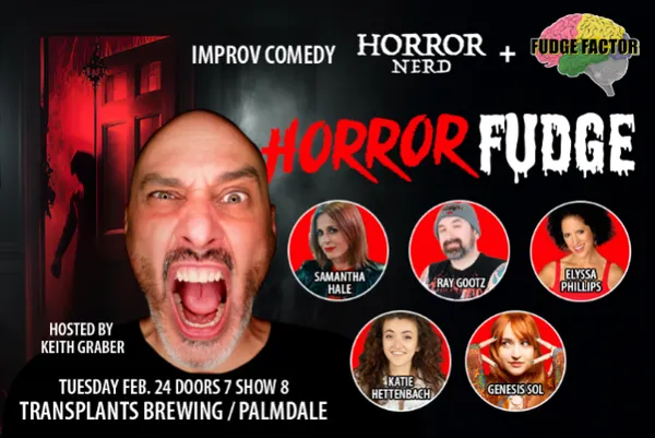 Horror Fudge is a combination of Horror Nerd (horror themed comedy) and Fudge Factor! This will be a horrar themed improvised standup comedy game show where the audience submits topics for the comedians to riff on. Every member of the audience gets to be a part of the action by writing down suggestions. Then they get to sit back and watch, while the comedians fudge their way through their sets. Host: Keith Graber