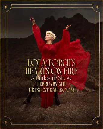 HEARTS ON FIRE BURLESQUE SHOWby LOLA TORCHLola Torch is back with another fiery Valentines burlesque show! Shes gathered together some of the hottest talent in Phoenix and Tucson and they will be performing their most smoldering acts for the occasion. Bring your valentine or your galentine for a spicy night of entertainment sure to get you in the mood!Lola Torch has been an icon of the Tucson burlesque scene since 2006. She has captivated audiences as the award winning producer and host of Tucson Libertine League. Lola also curates two shows, REVEAL and INGENUE, which highlight the extraordinary graduates of her REVEAL burlesque workshops.With her sultry singing voice, Lola Torch has set stages ablaze in Tucson and beyond. Her performances are a blend of diverse acts, dazzling handcrafted costumes, and an undeniable passion for the art of burlesque.Friday, February 6th 2026Doors at 7:00 / Show at 8:0021+General Admission Ticket: $18 - 22 + fees Table for 4: $99 + fees Table for 2: $49 + fees