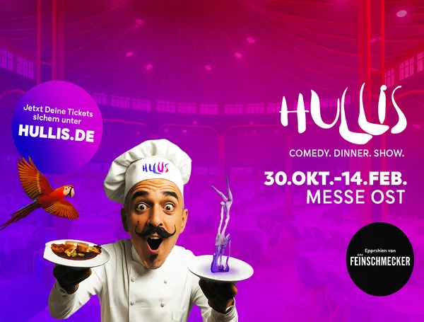 HULLIS – Comedy. Dinner. Show ist da und bringt frischen Wind auf die Bühnen der Stadt! Freut euch auf ein herzerfrischendes Showprogramm, entwickelt und zusammengestellt vom erfahrenen Produktionsteam rund um Dinnershow-Profi und künstlerischen Leiter Sven Pawlitschko – in München bekannt als „Daniello“.