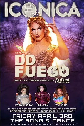 ICONICAfeaturing DD Fuego (from the current season of RPDR)Twigs Vondu, Aria Vee & Kyla MinxA Non-Stop Drag Dance Party featuring Two Sets of Drag & music by DJ LiuLiuliminalFriday, April 3rd. 10PM. 18+*Your ticket also includes the watch party for RuPauls Drag Race beginning at 8pm earlier in the night.