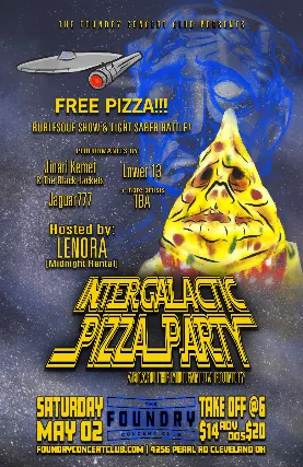 Were celebrating Star Wars Day early and having an Intergalactic Pizza Party!!!get your best cosplay on and be ready to board The Millennium Foundry for a ride thru the Galaxy!There will be FREE pizza and tons of live entertainment.Live music by: Lower 13Jaguar 777Jinari Kemet and the Black JacketsPlus BURLESQUE PERFORMERS and a LIGHT SABER BATTLE!the evening will finale with a ROBOT DANCE PARTY!TAKE OFF AT 6 PM!!!!!!