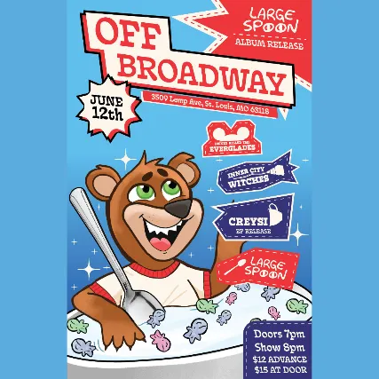LARGE SPOON ALBUM RELEASEW/ CREYSI & THEIR EP RELEASEINNER CITY WITCHESDISNEY KILLED THE EVERGLADESFRI. June 12, 2026Doors 7PM | Show 8PM$12 ADV | $15 DOSGeneral Onsale begins NOW!All Ages (21+ with valid ID to drink, $3 minor surcharge under 21)In order to combat third-party resale, we have recently enacted a delivery delay on all tickets purchased online. You will receive an order confirmation immediately after your purchase, and your tickets will be emailed to you/made available in your Ticketweb account TWO DAYS before the event.