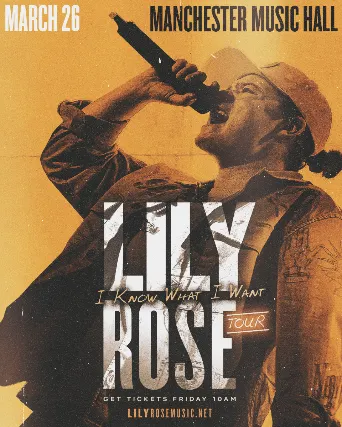 Lily Rose has never been one to second-guess herself. After her breakout 2020 viral hit Villain was released, the Atlanta native went from local favorite to national name practically overnight landing a record deal, joining tours with Sam Hunt, Luke Bryan and Shania Twain, national TV performances and racking up accolades including an ACM Best New Female Artist nomination and GLAADs Outstanding Breakthrough Artist Award. But even with the momentum, Lily was still searching not for success, but for clarity. That clarity defines her next chapter in I Know What I Want, her long-awaited full-length debut released Oct 2025. Capturing a new era of creative freedom and blending country, pop and hip-hop influences, Lily is stepping fully into a sound thats unmistakably her own. Named an artist to watch by CMT, MusicRow, Amazon and more, she continues to carve out a path rooted in bold storytelling, powerful vocals, dynamic stage presence and a deep connection to a rapidly growing fanbase who see themselves in her songs.
