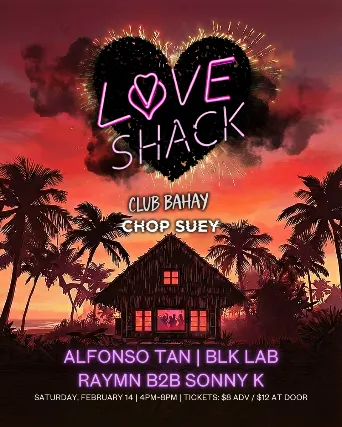 Chop Suey Presents:Love ShackFeaturing Alfonso Tan, Blk Lab, Raymn b2b Sonny Kon Saturday February 14th