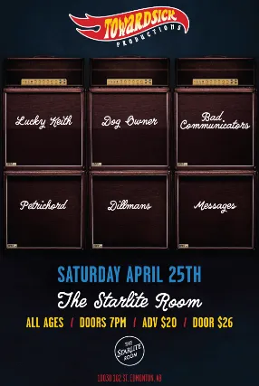 Lucky Keithhttps://www.instagram.com/luckykeithband/Dogownerhttps://www.instagram.com/dogow.ner/ Bad Communicatorshttps://www.instagram.com/badcomband/https://linktr.ee/BadCommunicators Petrichordhttps://www.instagram.com/petrichord.band/ The Dillmanshttps://www.instagram.com/the_dillmans/ Messageshttps://www.instagram.com/messages_band/