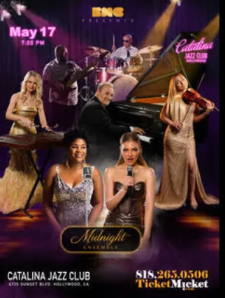Midnight EnsembleDirected by Armen MartirosyanFeaturing: Armen Martirosyan PianoArman Jalalyan DrumsMarta Golubko CimbalomAnastasia Anisimova ViolinAbo Gumroyan BassLee Moon VocalSofia Polonsky VocalSpecial Guest Zaruhi SargsyanA unique multicultural sound, brought to life by Midnight Ensemble under the direction of Armen MartirosyanGet Your Tickets! Online at CatalinaJazzClub.com or TicketWeb.comCatalina Jazz Club6725 West Sunset Blvd.Hollywood, CA 90028*Tickets purchased online receive priority seating.*Single Entree or Drink minimums apply for all patrons.