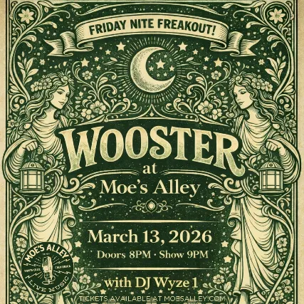 Santa Cruz favorites Wooster return to the stage in their hometown for a rare and much-anticipated show, marking their first local appearance in years and a special moment for both the band and the community that helped shape their sound. Known for their irresistible blend of reggae, soul, blues, rock, and laid-back funk, Wooster delivers groove-driven songs, sweet male-female harmonies, and an energy that turns every room into a dance floor. Expect infectious rhythms, feel-good melodies, and songs that stick with you long after the lights come up. Woosters live show is pure electricity the kind of night where the crowd is smiling, dancing, and singing along before they even realize it.This is more than a show its a homecoming celebration and a chance to welcome back a band that knows exactly how to make Santa Cruz move.Musically, Wooster is a party-ready blend of California reggae, soul, funk, rock, and Motown-style hooks.DJ Wyze 1 will by on the 1s and 2s! Friday, March 13, 2026Doors: 8pm / Show: 9pm$20 in advance / $25 day of the show21+* All sales are final* Avoid scammers! Only purchase tickets from moesalley.com or ticketweb.com* Tickets requested by email will be delivered 3 days prior to the event* Will Call tickets will be available at the door on the day of the event====
