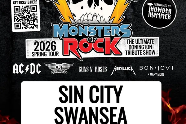 Grab tickets now before it sells out.#MonstersOfRock #SinCitySwansea #RockTribute #LiveMusicWales #ACDC #GunsNRoses #Metallica #BonJovi #RockNight #SwanseaGigs #ThunderHammer