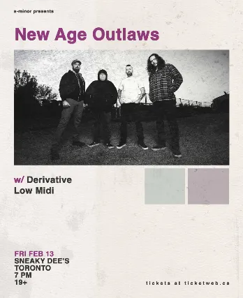 Legal age 19+. Photo I.D. RequiredA-MINOR PRESENTSNew Age Outlawshttps://linktr.ee/naohardcoreDerivativewww.instagram.com/derivative.bandLow Midiwww.instagram.com/lowmidi