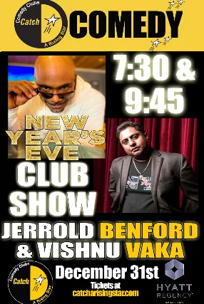 2 item minimum per person (Food and/or Beverage)Catch A Rising Star Comedy ClubPresentsNYE CLUB SHOW W/ JERROLD BENFORD, VISHNU VAKA and JAY JOSHIFor More Information Visitwww.catcharisingstar.comBox Office781.568.1471Shows Every Friday at 8:00pm & Saturday at 7:30pm & 9:30pmLast Minute Ticket Giveaways & Enter To Win ContestsTake a moment and pull out your cell phone and send a text to 555888 with LOL as your message. You will be entered into all of our contests including the FREE year of Comedy contest as well as last minute ticket giveaways. Text us to get added to the list today!Corporate & Private Parties & FundraisersFor your corporate & private shows or how to do a fundraiser at our venue or a venue of your choice please contact mike@catcharisingstar.com for more information. Our shows are a great way to raise money for your school, organization and charities Happy Birthday From CatchIs it your Birthday the week of the show? Then you get in FREE!!!! Must have proper ID showing date of birth & reservations required to get in for FREE! Call 781.568.1471 for information Twitter/Facebook/FourSquareFollow us on Twitter @CatchNewJersey for all of our locations throughout New Jersey& become a fan of ours on Facebook, http://goo.gl/RLxOeK for FREE tickets, information on upcoming shows, latest contests & ticket discounts only available to Twitter & Facebook users Check in with Foursquare to unlock special deals & FREE tickets to our Comedy Shows Term & Conditions14-17 with adult to enter the club & 21 to drink. There is a 2 item minimum per person during the show. (Food and/or Beverage). All sales are final although we will exchange your tickets for a future show if you cannot attend. Must call 48 hours before show to exchange tickets. Large Party SeatingIf you have a party of 6 or more please call the box office at 609-987-8018 so we are aware of the seating arraignments & you can seat together. Catch A Rising Star Comedy ClubLocated Inside The Hyatt Regency PrincetonCorner of Route 1 North & Alexander Rd East102 Carnegie CenterPrinceton NJ 08540