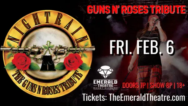 NIGHTRAINS Tribute show to Guns N Roses has been taking the US by storm for 14 years running. Performances have ranged from The House Of Blues, MTVs Famous Club LaVela, The FC Dallas Stadium, to this years Carolina Rebellion, sharing the bill with Alice In Chains, Soundgarden, s ever growing Tribute Market. The accurate vocals and hypnotic swaying of Axl both capture the audiences attention from the first beat down to the last note. Slashs classic riffs and perfect showmanship (and lets not forget the top hat) will make everyone do a double take. However, Axl and Slash are only part of the show. The tight rhythm of Izzy, Duff, and Steven are the glue that keeps this true concert tribute together. Izzys laid back stylea 6 blonde Duffthe energy of Steven popcorn Adler complete this visually and musically accurate line-up. This bands vibrant stage presence and accuracy to everything about Guns N Roses leaves the entire crowd pleased.Website: https://www.nightrainrocks.comVideo: https://www.nightrainrocks.com/videosDOORS 7PM | SHOW 8PM | 18+ Box Office Opens 5:30PM Day of Show - $5 Ticket IncreaseCash or Credit Bar - ATM Available OnsiteFREE PARKING - Located Behind the Theatre**ALL TICKETS INCLUDE ACCESS TO MAIN LEVEL DANCE FLOOR**Second Floor Balcony Seating$22 ADVANCE | $27 DAY OF SHOWIncludes access to the main level dance floor & unassigned 2nd floor balcony seating.ADA Seating$22 ADVANCE | $27 DAY OF SHOWIncludes access to the main level dance floor & special seating for guests with disabilities.Main Floor Single$29 ADVANCE | $34 DAY OF SHOWIncludes unassigned main floor table seating and main level dance floor access.Main Floor Table of 8*$225Seats 8 guests maximum, includes admission for 8, assigned reserved seating on main floor.Opera Box* --SOLD OUT--$225Seats 4 maximum, includes admission for 4, VIP seating, cocktail service.*NOTE: (1) Ticket provided per Main Floor Table or Opera Box; Incomplete parties can be seated, please have ticket holders name available. To purchase more than (3) Main Floor Tables, or an ADA Main Floor Table please call the Theatre to reserve 586-630-0120.Sky Box $1,000Includes seating and admission for 30, commemorative lanyard for each guest, private bar and bartender. Appetizers available, call for selections and pricing. Located on the third floor of the theatre. To book please call (586) 630-0120 or email Info@TheEmeraldTheatre.com.