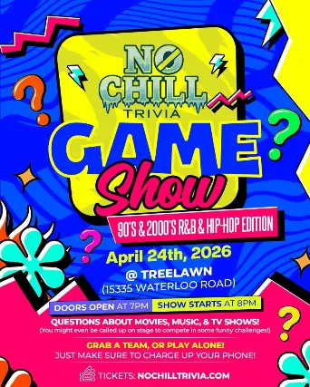 A game show where you play right from the comfort of your seat! Mix in some of your favorite songs from 90s hip-hop & R&B, some dancing, laughing, oh yeah, and some crazy challenges up on stage!