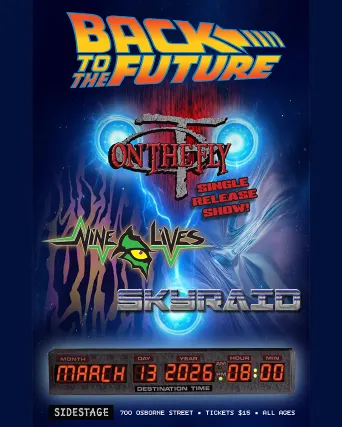 Friday, March 13, 2026Back to the Future!On The Fly - Single Release ShowNine LivesSkyraidDoors 8PMMusic 8:30PM$15 AdvanceAll Ages