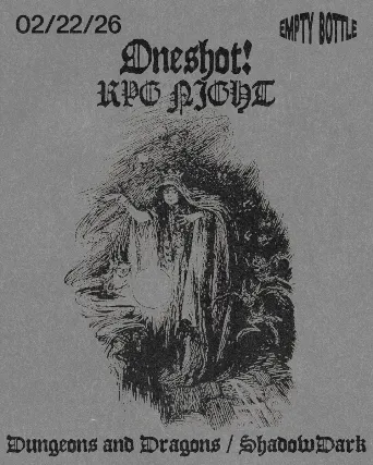 Doors: 6PM / Campaign: 7PM / 21+Join Empty Bottle and Wizard Staffing Co. for an evening of Dungeons & Dragons and Shadowdark! If you have ever been interested in playing (or learning!) this is your chance! No experience necessary. Bringing friends? Please email us at hello@wizardstaffing.co if you would like to be seated at the same table as other guests (max 6 per table.) If all tickets were purchased within the same order, you will automatically be placed at the same table.**Sessions will start promptly at 7pm, ticket holders who arrive after 7:30pm may not be able to join.