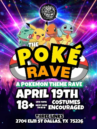 Poke Rave is coming to Three Links Deep Ellum with special guests, vendors and more!This is an 18+ event.Please arrive with a physical form of government ID.Minors under the age of 21 must pay a $5 fee upon entry.GA standing room only.