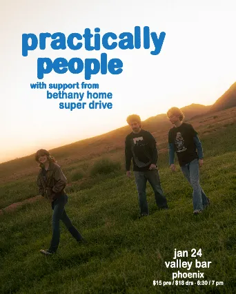 PRACTICALLY PEOPLEwith special guestsBETHANY HOMESUPER DRIVESaturday, January 24th 2026Doors at 6:30 / Show at 7:00 16+Advance General Admission Ticket: $15 + feesDay of Show GA Ticket: $18 + fees